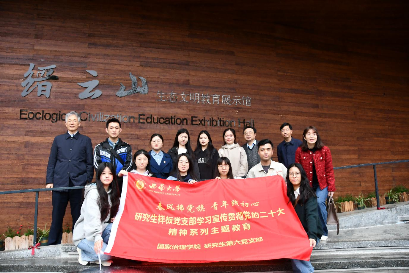 为深入学习宣传贯彻党的二十大精神和习近平生态文明思想,引导广大青年党员自觉做生态文明守护者、建设者和推动者,3月23日上午,国家治理学院研究生第六党支部赴缙云山国家级自然生态保护区开展“青年向善治,守护生态绿”主题实地调研、现场教学活动。北碚区人大、学校党委研究生工作部、国家治理学院等单位负责人、研究生第六党支部党员及入党积极分子代表参加了此次活动。