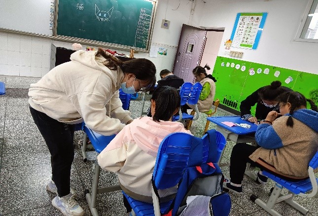 3月2日-16日,学院“小数点”志愿服务队、党员服务团来到北碚区特殊教育学校梅花班,开展“指间数学”折纸义务课堂活动。课堂上,志愿者们用折纸作品演绎教学为手段,为特殊儿童们教授数学几何知识,抽象的数学思维在折纸课堂中生动活泼地呈现出来,不仅锻炼孩子们的动手能力,也激发了同学们的数学思维和浓厚的学习兴趣。数学与统计学院“指间数学”折纸义务课堂与北碚区特殊教育学校已有10余年的合作历史,志愿者们每周四下午都会来到特殊教育学校开展折纸与数学教育,服务特殊儿童超5000人次。经过10余年坚持不懈的努力,为特殊学校的孩子们识别基本图形,掌握对称、平移、旋转等基础概念及其在生活中的运用提供精心指导,帮助特殊儿童开发数学思维,走出自己的方寸天地,在手工折纸中感受数学智慧,在拥抱数学的同时拥抱世界、描画梦想。
