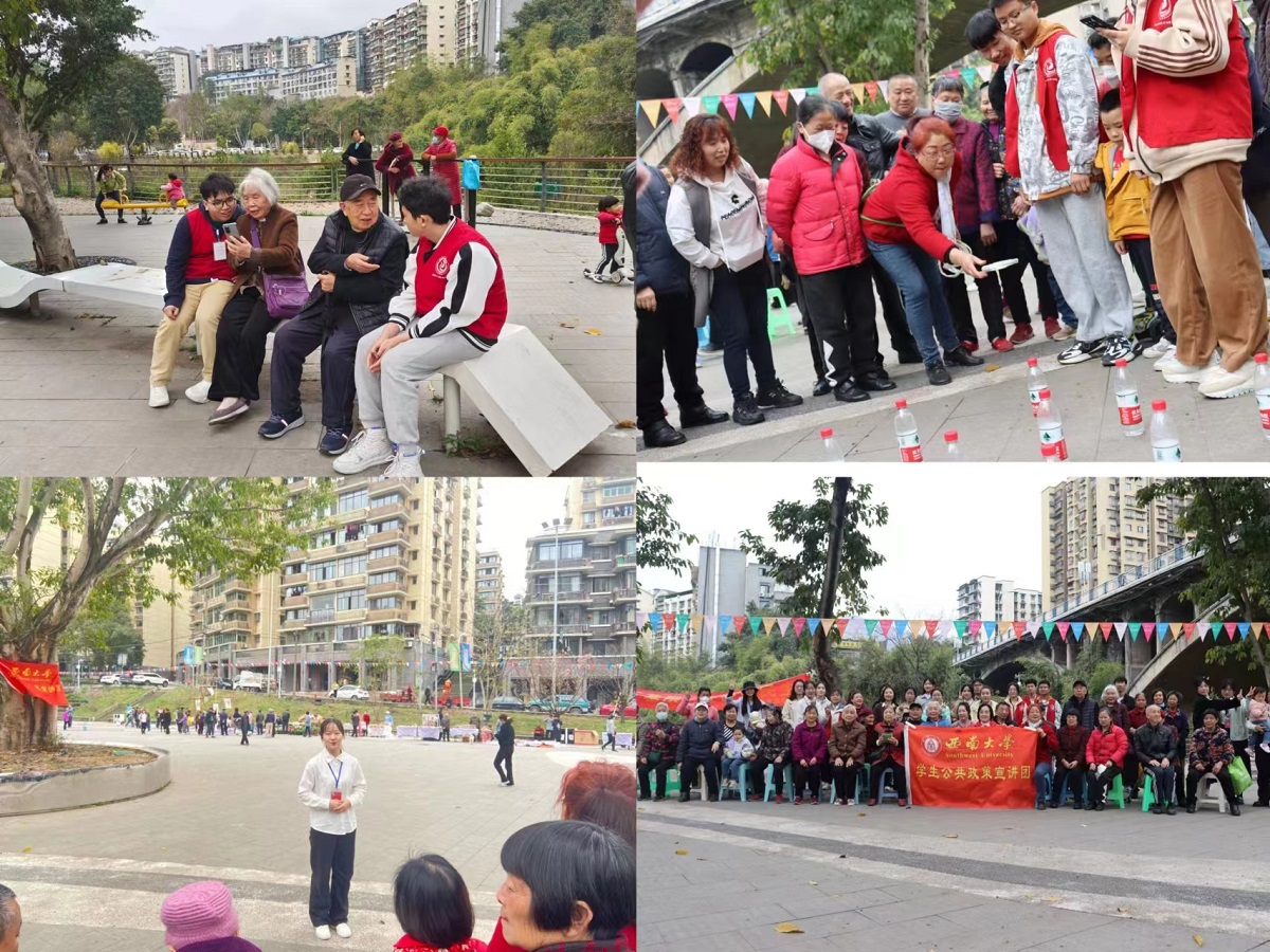 政策下基层,宣讲惠民生。为深入学习贯彻党的二十大精神,深刻领会新时代新征程党的使命任务,激发广大群众的爱党爱国热情,学校党委统筹谋划、积极推动,主动挖掘各级各类学生先锋团队特色亮点,成立党的二十大精神巡讲团,组织学生进乡村、进厂舍、进社区开展主题宣讲活动。近日,学校学生公共政策宣讲团(以下简称“公宣团”)在学校北社区举办“不忘初心念党恩,砥砺奋进向未来”主题宣讲活动。