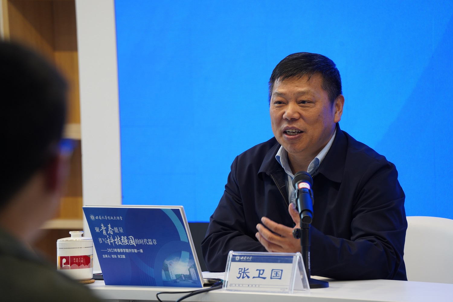 在课堂最后,张卫国嘱托广大学子要“秉承‘含弘光大,继往开来’的校训,充分发挥青春的能动力和创造力,聚青春能量,书写科技强国的时代篇章,不断推动中华民族砥砺前行,不断夺取伟大胜利!”