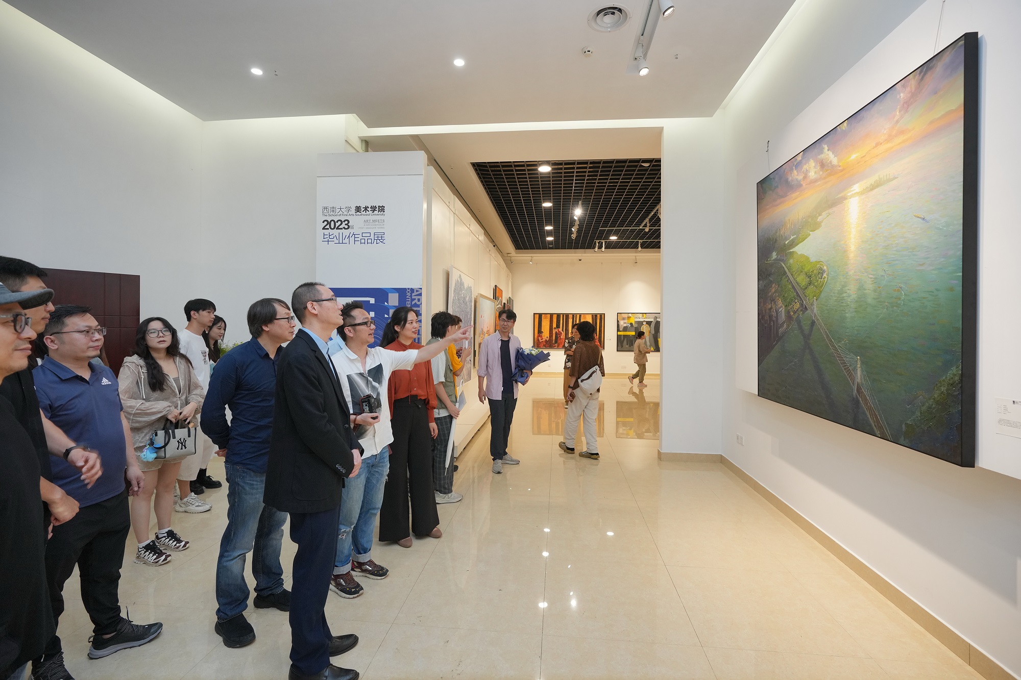 毕业作品展以“正当时”为主题,寓意国家正当时、民族正当时、艺术正当时、青春正当时、学校正当时、学院正当时等一系列思想隐喻的聚合。展览呈现了267位本科毕业生、95位研究生毕业生的作品。毕业生们将其对艺术的理解和对时代的感知融入作品之中,聚焦人民生活、山河形貌、民族记忆、媒介表现等题材,运用水墨勾染、油性笔触、物态雕成、材物混合等艺术表现技法,充分反映了以人民为中心的创作导向,展现了学院2023届毕业生的创意思维、个性语言和专业水准。