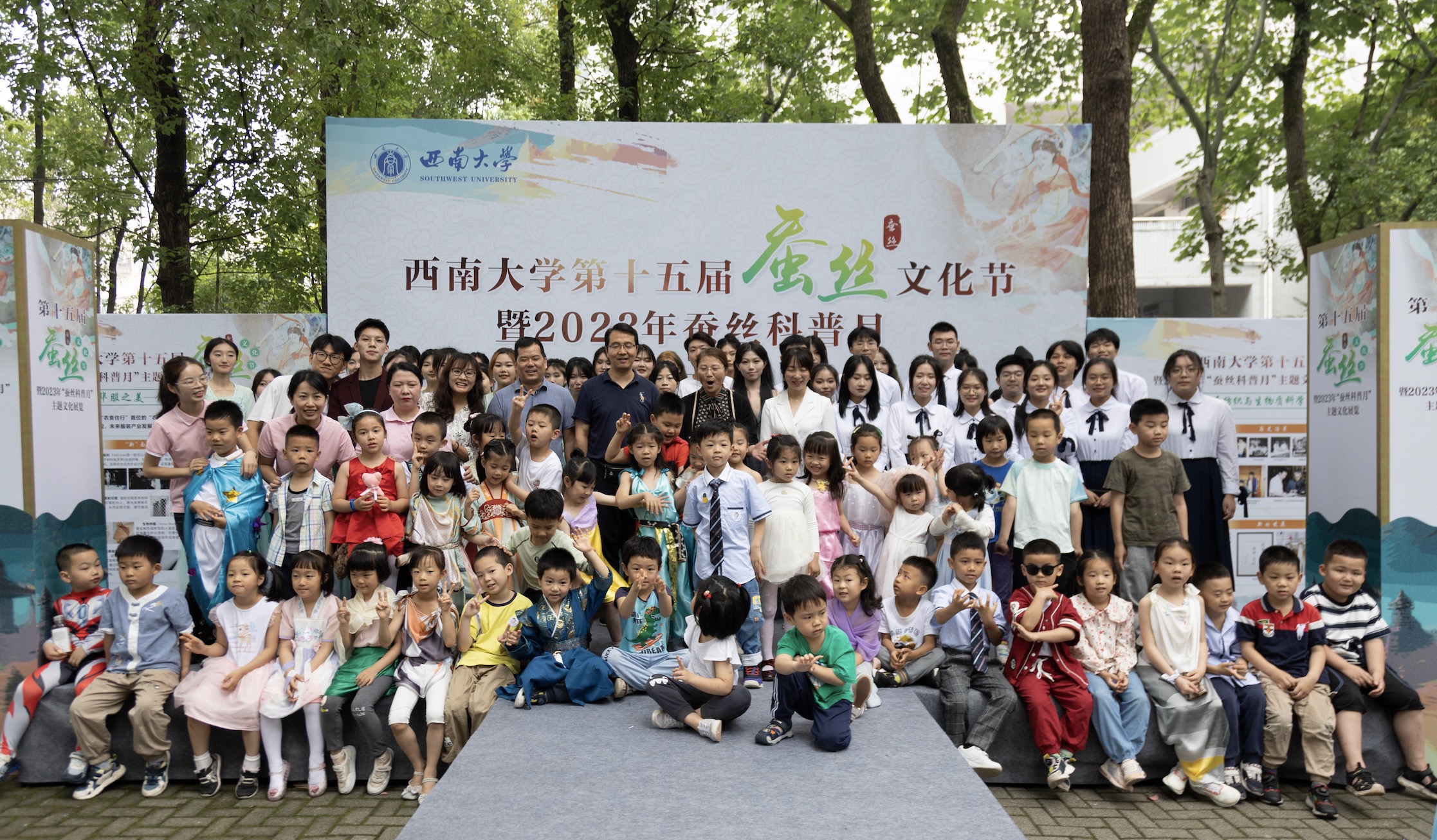 为深入学习贯彻党的二十大精神和习近平新时代中国特色社会主义思想,弘扬中华民族传统文化,拓展蚕桑文化科普,引导新时代青少年投入到新蚕桑事业的发展中,蚕桑纺织与生物质科学学院、资源昆虫高效养殖与利用全国重点实验室、实验幼儿园联合举办“第十五届蚕丝文化节暨2023年蚕丝科普月”系列活动。5月28日上午,第十五届蚕丝文化节颁奖典礼在樟树林举行。学院党委书记张袁松,学院院长、资源昆虫高效养殖与利用全国重点实验室主任代方银,及实验幼儿园和学院相关负责同志参加活动。