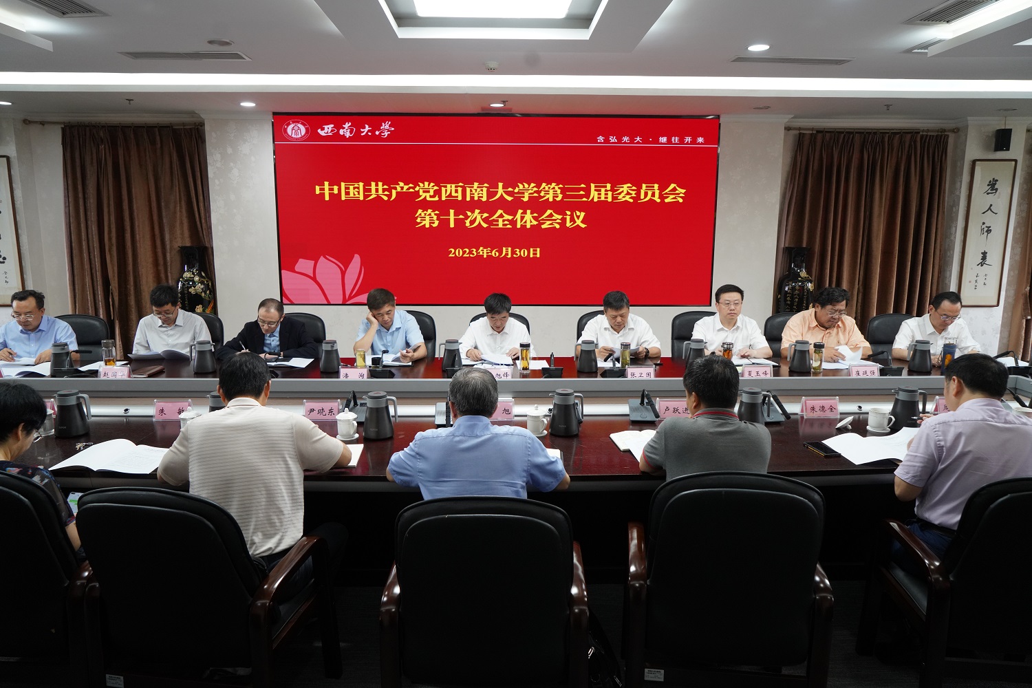 6月30日上午,学校召开中国共产党西南大学第三届委员会第十次全体会议。会议审议通过了党委书记李旭锋所作的《凝心聚力 锐意进取 奋力书写教育强国西大篇章——在中国共产党西南大学第三届委员会第十次全体会议上的工作报告》。李旭锋主持会议,全体党委委员出席会议。