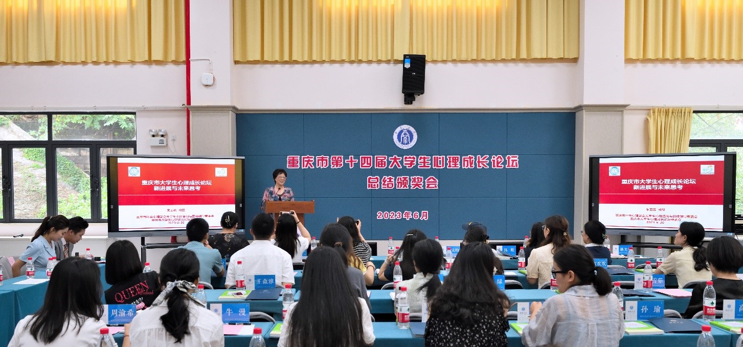为深入贯彻党的二十大精神,落实落细教育部等十七部门联合印发的《全面加强和改进新时代学生心理健康工作专项行动计划(2023-2025年)》文件精神,重庆市第十四届大学生心理成长论坛近日在学校顺利举行。来自全市30余所高校的心理健康教育专兼职教师齐聚一堂,专题研讨新时代心理健康教育工作实践等问题。