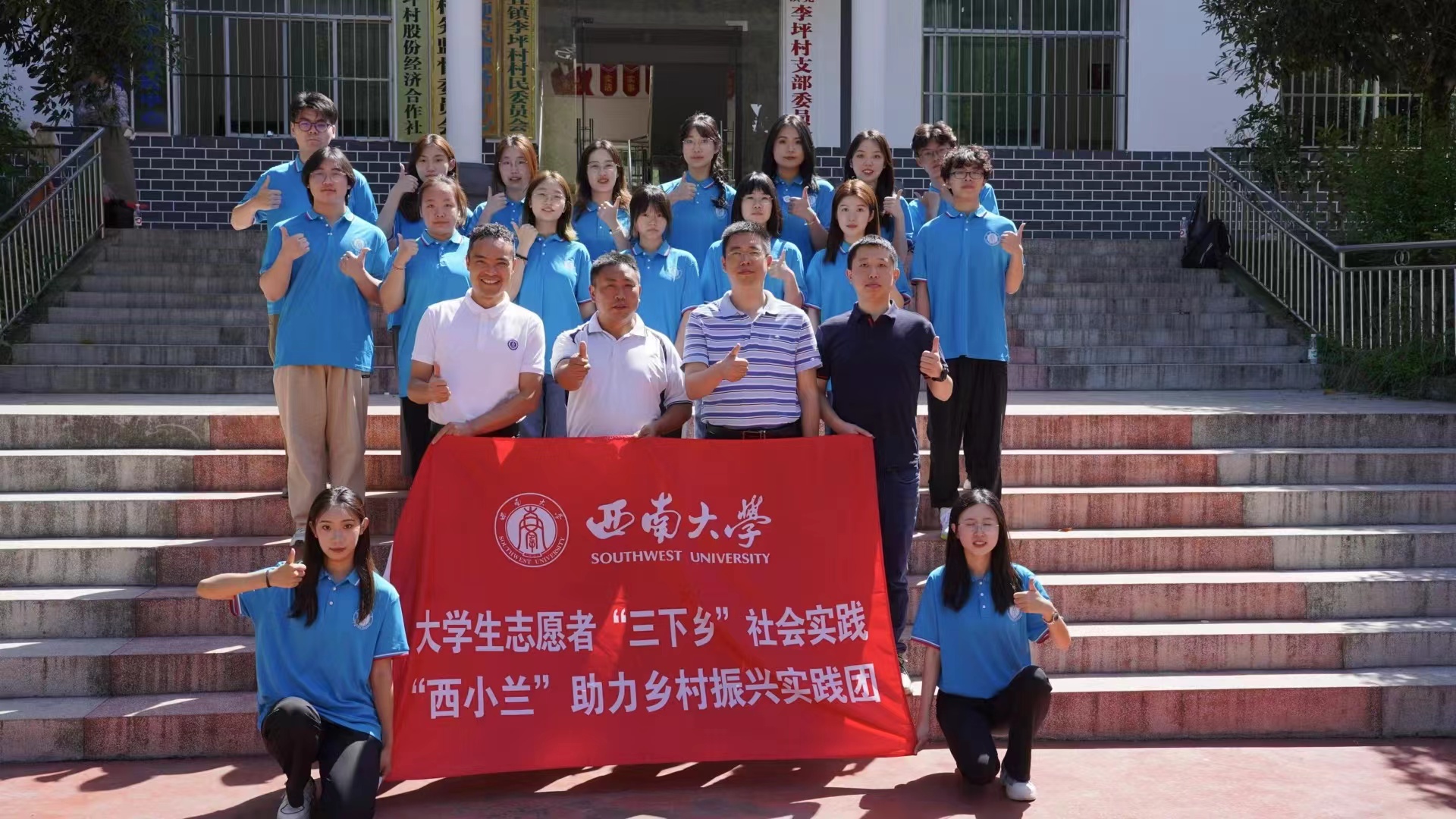 编者按:正值暑期,西南大学立足扎实开展学习贯彻习近平新时代中国特色社会主义思想主题教育,深入学习宣传贯彻党的二十大精神,鼓励广大青年在实践中受教育、长才干、作贡献,学生志愿者暑期文化科技卫生“三下乡”社会实践活动如期拉开帷幕。6月27日,西南大学举办“三下乡”社会实践活动出征动员仪式,号召同学们紧跟时代航向,深入乡村基层,奉献青春力量。以“学习二十大,永远跟党走,奋进新征程”为主题,西南大学共组建20支市级重点团队、39支院级小分队、400余支校级小分队,近万名青年学子围绕党史学习、理论宣讲、国情观察、乡村振兴、民族团结等主题前往全国27个省市开展实践活动,在实践中锻造自身成为“有理想、敢担当、能吃苦、肯奋斗”的新时代好青年。学校将持续关注报道青年学子担当作为和实践育人成果成效,敬请关注。
