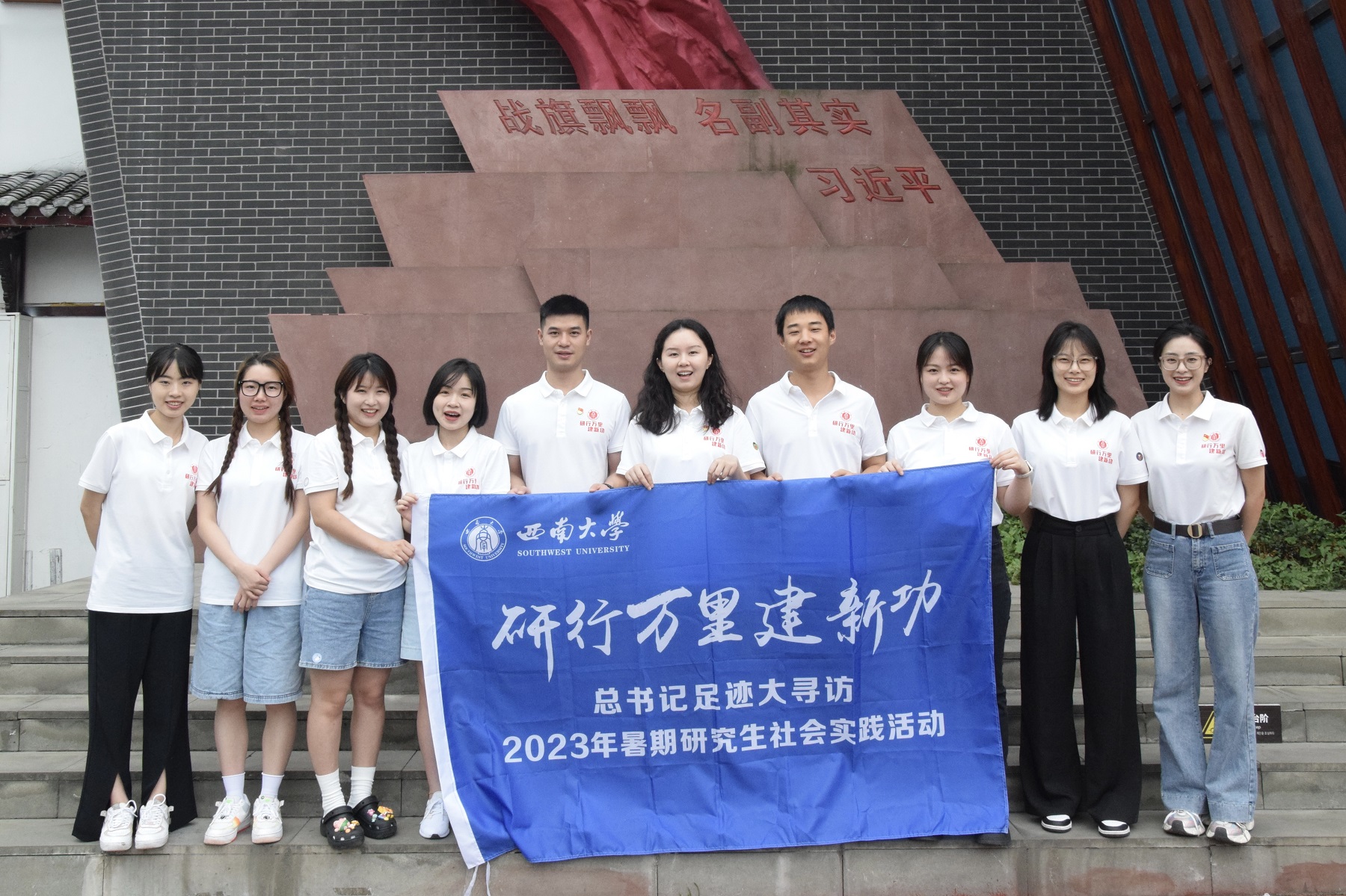 为深学笃行党的二十大精神,推动学习贯彻习近平新时代中国特色社会主义思想主题教育走深走实,新闻传媒学院“薪火新传”实践队在为期三天的“研行万里建新功,书记足迹大寻访”研究生社会实践四川战旗行中,将镜头和文字聚焦于新时代十年党和国家取得的历史性成就、发生的历史性变革,踏入乡村振兴的新田野中,追寻习近平总书记考察足迹,开展乡村成就调研,以笔尖记党员实干、海报展非遗匠心、镜头讲振兴故事,将青春动能化为实干效能,投身乡村振兴的伟大事业中,练本领、建新功!