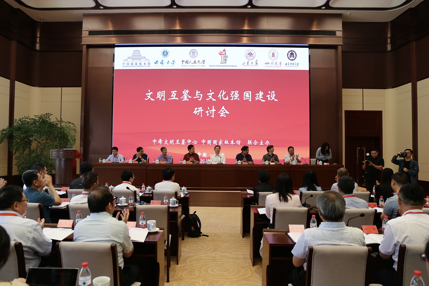 为深刻领会习近平总书记致首届文化强国建设高峰论坛的贺信精神,深入学习贯彻习近平总书记在文化传承发展座谈会上的重要讲话精神,在新的历史起点上继续推动文化繁荣、建设文化强国、建设中华民族现代文明,准确把握世界文明交流互鉴的必然趋势,为建设社会主义文化强国注入生机活力,7月8日,中希文明互鉴中心与中国国家版本馆在京联合举办文明互鉴与文化强国建设研讨会,中国国家版本馆党委书记、馆长刘成勇,西南大学副校长、中希文明互鉴中心中方主任崔延强出席开幕式并致辞。来自中心共建单位西南大学、中国人民大学、山东大学、四川大学以及曲阜师范大学等高校有关领导、专家学者40余人参加会议。