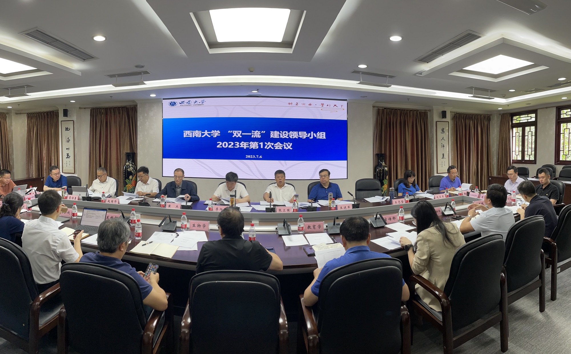 7月6日上午,校长张卫国主持召开西南大学“双一流”建设领导小组2023年第1次会议,评议学校整体建设自评报告和教育学、生物学学科的建设自评报告。张卫国对建设中期取得的成效给予了肯定,强调要按照“双一流”建设方案、深化新时代教育评价改革重点任务、服务国家重大战略和区域经济社会发展、解决“卡脖子”问题等方面完善自评报告。