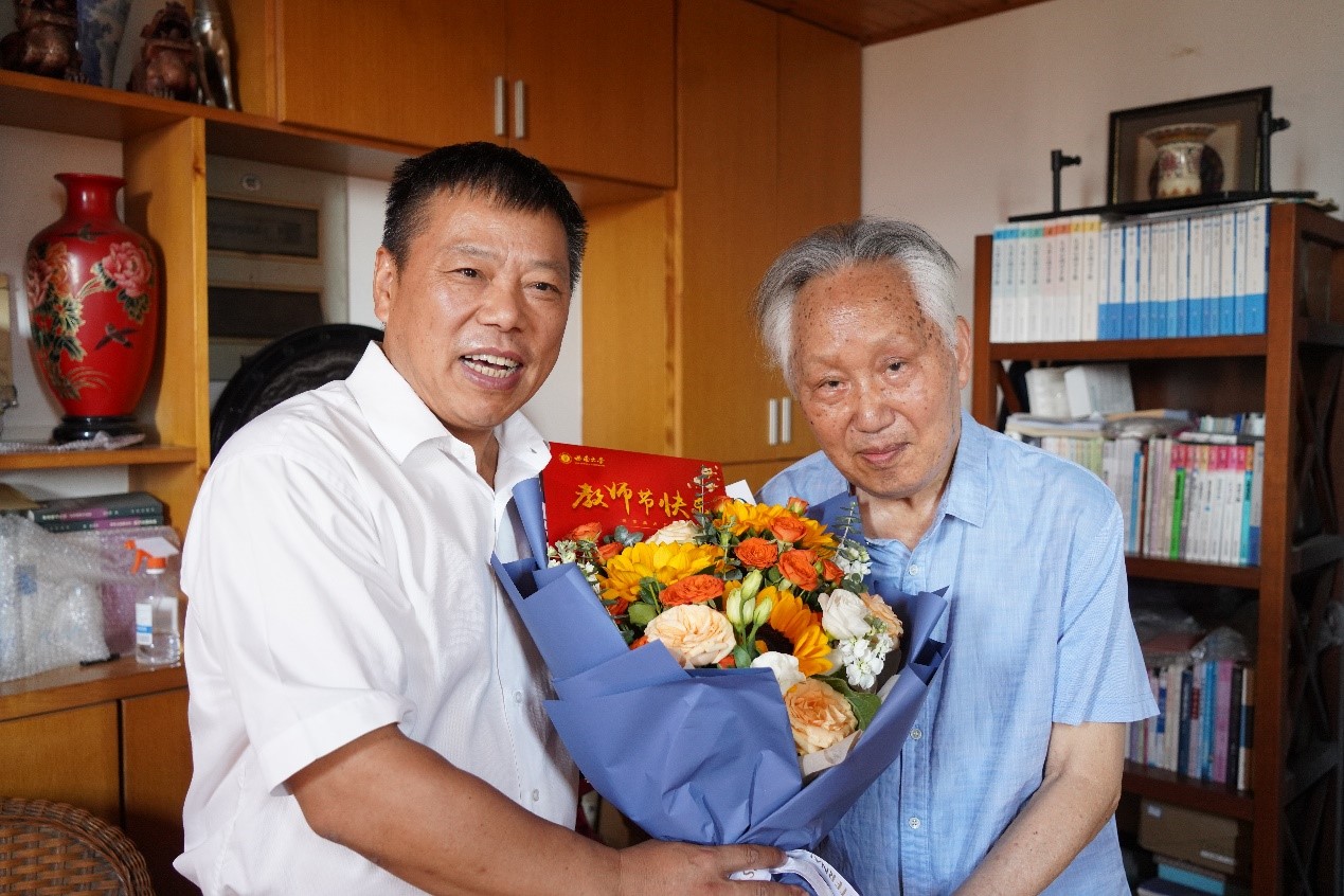 9月5日至9月8日,在第39个教师节来临之际,学校党委书记李旭锋、校长张卫国等校领导带领相关职能部门,分别走访慰问为学校教育事业发展做出突出贡献的院士、资深教授、名家名师、一线教师,为他们送去诚挚慰问,并致以节日祝福。