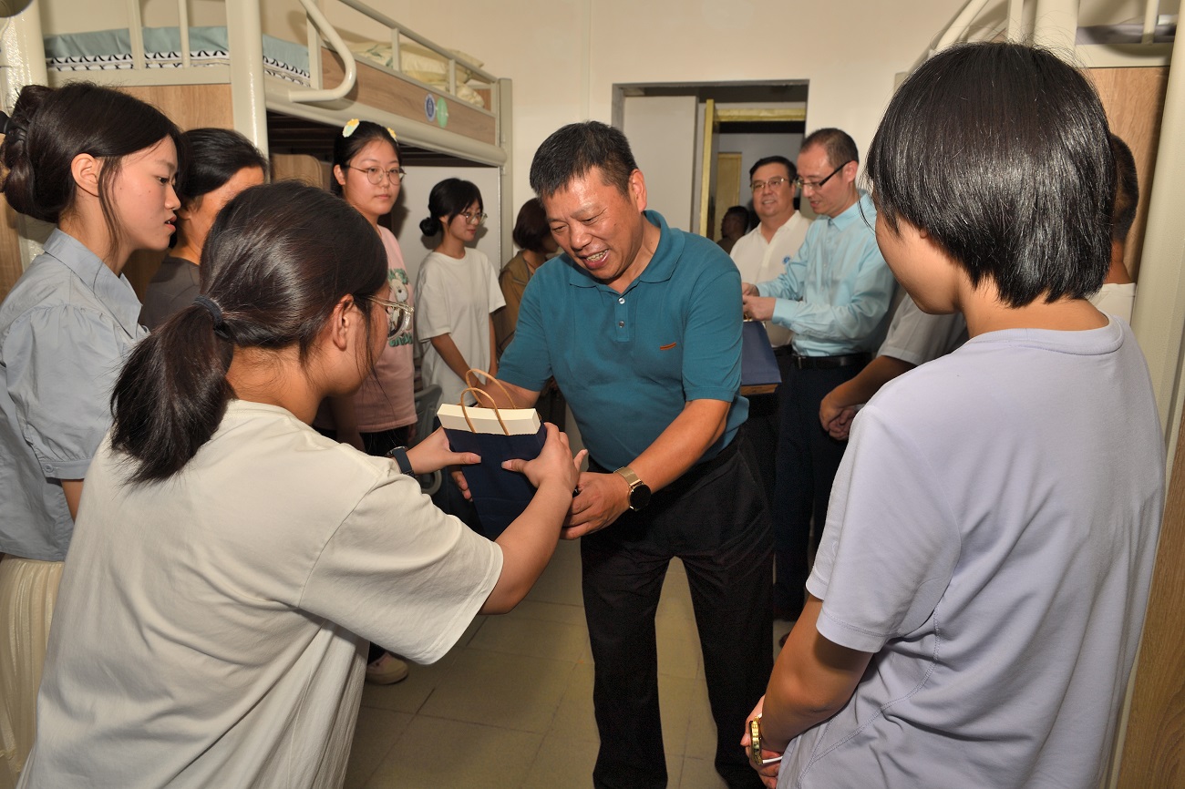 新生报到期间,校长张卫国带队前往校门、三运集中报到点、学生生活园区等地,认真检查指导交通流转、后勤医疗等各项迎新工作。校长张卫国、党委副书记黄杰、副校长王进军亲切慰问迎新工作人员和师生志愿者,详细了解新生报到入住等情况,叮嘱大家尽可能为新生提供周到的服务保障。“同学你家乡是哪里的?”“就读哪个专业?”在各迎新服务点和新生寝室,张卫国与新生亲切交谈,鼓励同学们积极适应新环境,珍惜大学时光,勇于攻坚克难,在奋斗中实现人生理想。