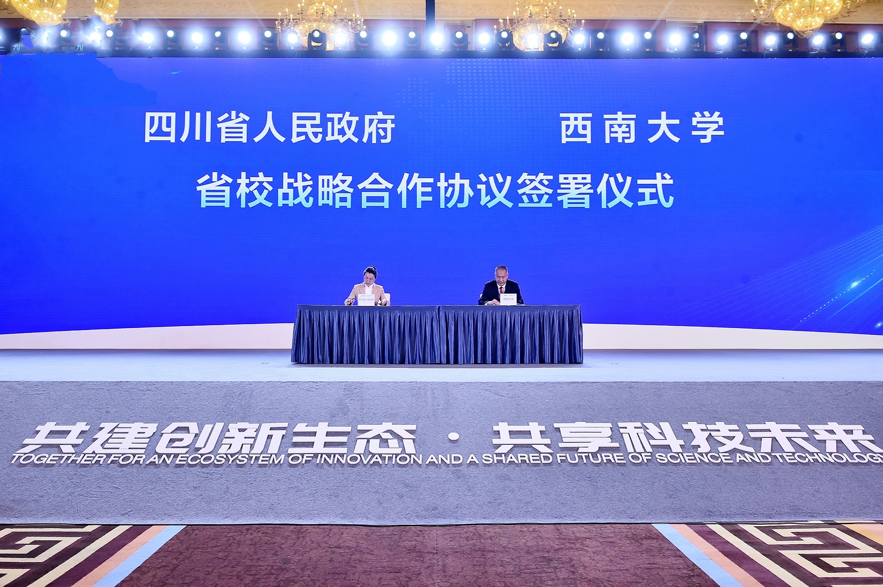 为积极服务成渝地区双城经济圈建设,推进学校与四川省省校合作,9月10日至11日,校长张卫国、党委副书记潘洵、副校长葛信勇应邀赴成都出席第21届中国西部海外高新科技人才洽谈会,并分别与四川省人民政府、四川现代种业集团签署战略合作协议。学校党政办公室、科学技术处、国内合作处、科学中心、资产经营有限公司、农学与生物科技学院、生命科学学院负责人及相关专家参加活动。