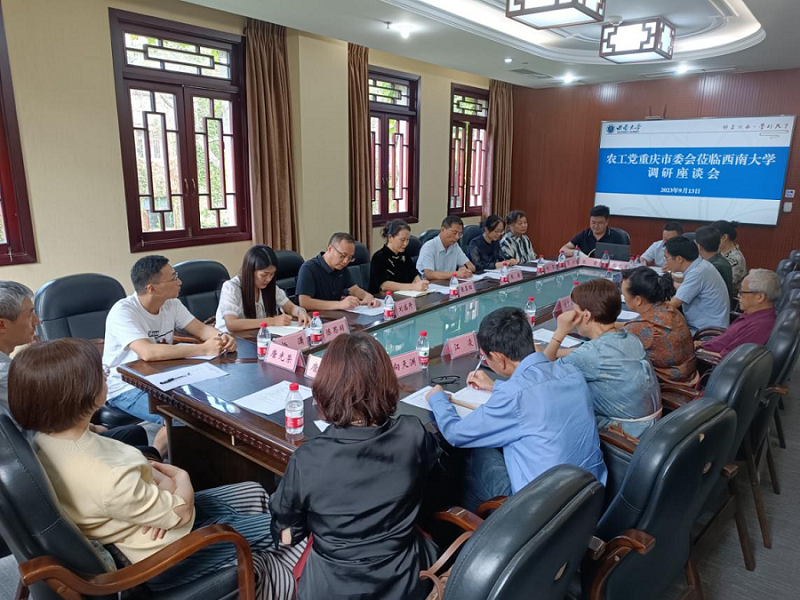 张昌红与农工党西南大学委员会召开座谈会,农工党西南大学委员会主委、文学院副院长寇鹏程围绕思想建设、组织建设、参政议政、社会服务、本职工作等方面,简要汇报农工党西南大学委员会工作。农工党党员代表刘重来、张霄、向天渊、黎明、江娟丽、杨晓红等同志围绕党史教育、讲好党员故事、入党体会、党务工作、社会服务等方面,进行交流发言,提出意见建议。