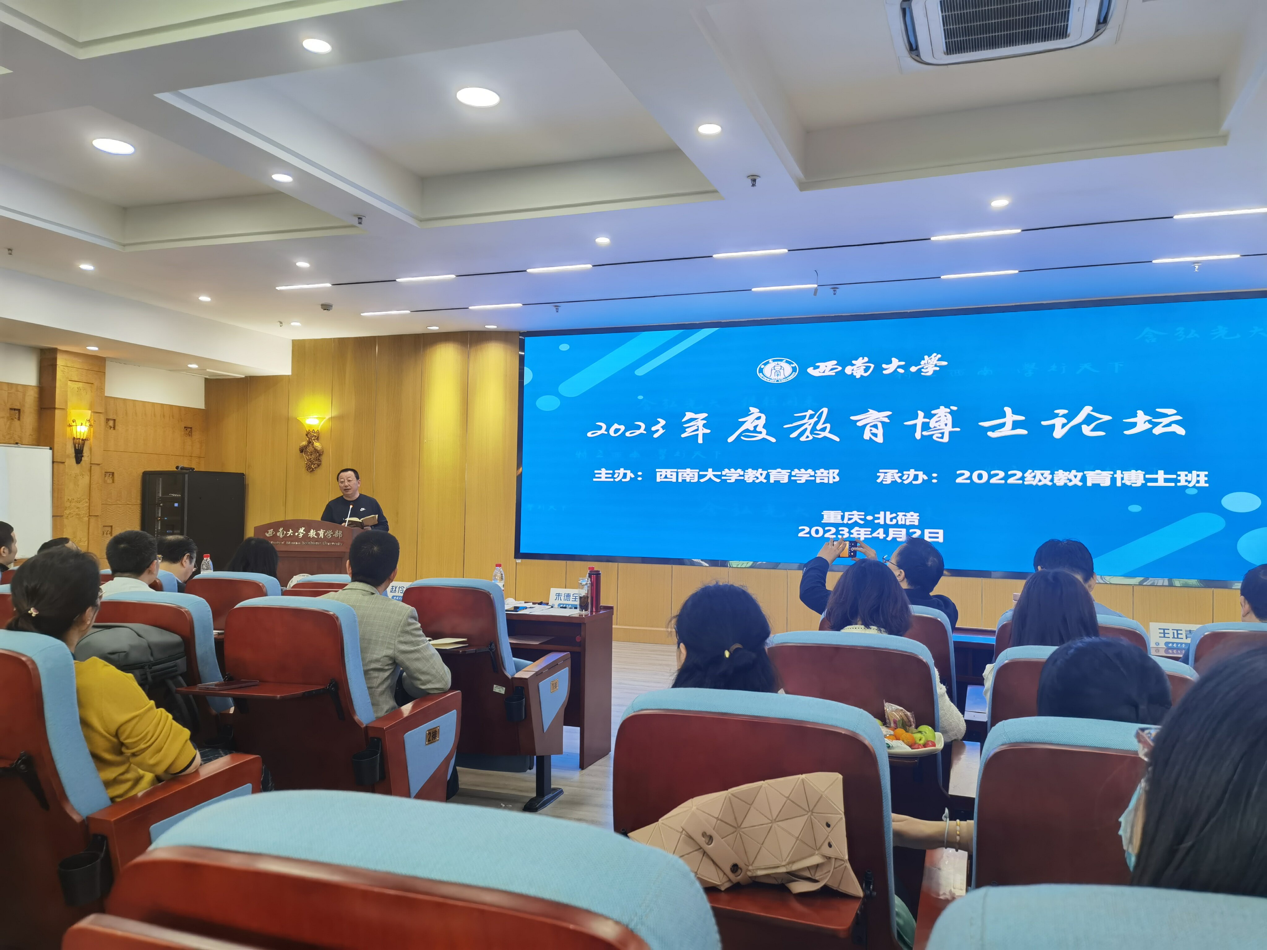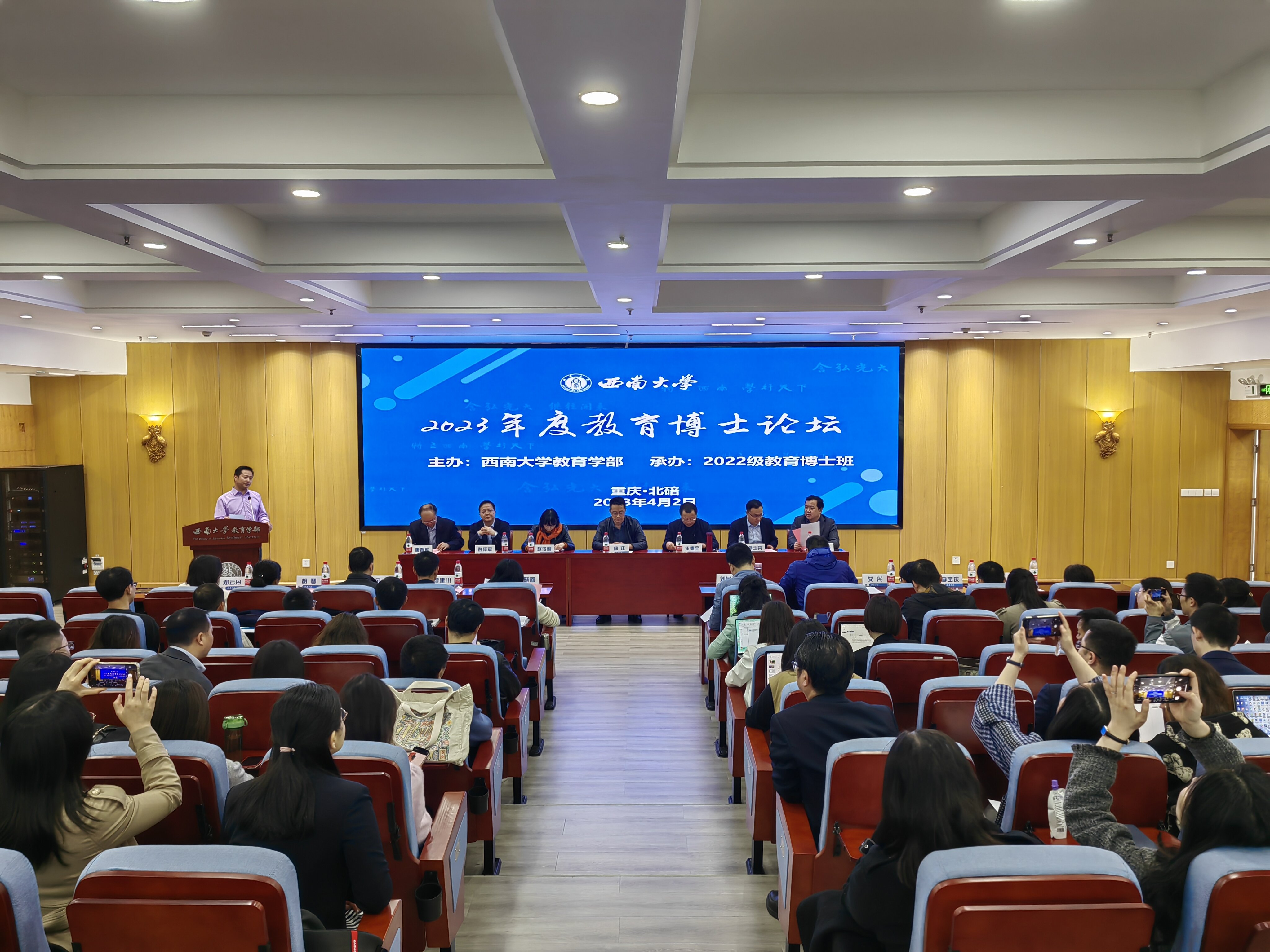 为充分发挥导师团队的集体指导作用,进一步加强教育博士学术训练与培养工作,2023年4月2日上午,由教育学部主办的西南大学2023年教育博士论坛在田家炳教育书院成功举办。学校研究生院院长邱江教授,教育学部部长朱德全教授,教育学部党委副书记、纪委书记卓玉兵老师,教育学部副部长彭泽平教授、副部长王正青教授,教育博士首席专家、美育研究院院长赵伶俐教授,教育研究院院长唐智松教授,教育博士导师团队刘革平教授、吴晓蓉教授、田晓伟教授、谭建川教授、艾兴教授、余亮教授、李宝庆教授,教育博士管理团队胡琴主任、秦荣芳老师、郑云丹老师出席会议。2021级、2022级教育博士参加了论坛。