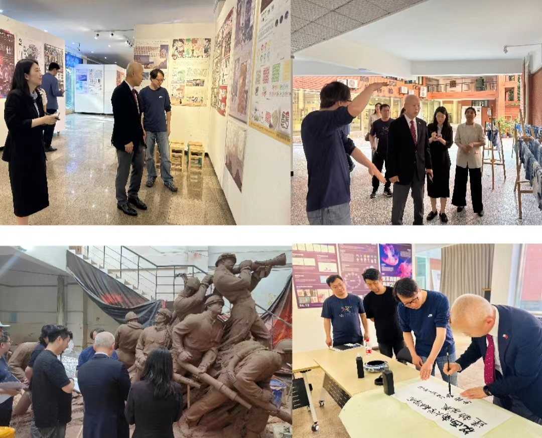 4月19日,韩国驻成都总领事李光镐一行到访美术学院,院长段运冬、党委副书记、纪委书记经刚、副院长陈刚、美术学系教师李东仁和学校国际合作交流处相关人员陪同参访。