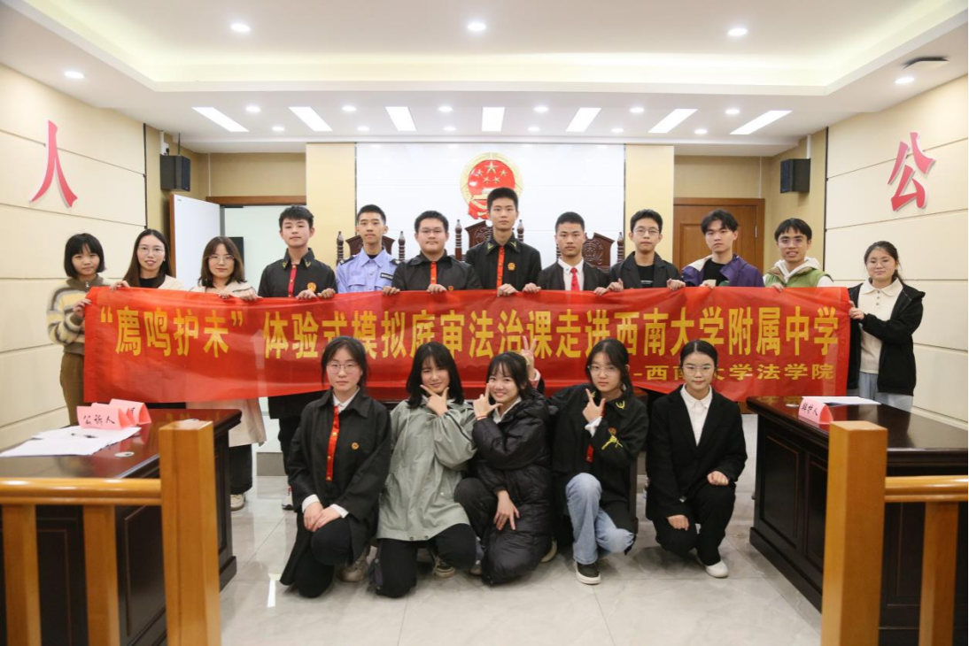 这场与西南大学廌鸣法学社团联合开展的模拟庭审活动,不仅为同学们带来了全新的生涯体验,更把生涯教育的场景转移到了课堂以外的更广阔的空间。长期以来,西南大学附中始终勇于担当教育使命感和时代责任感,让学校真正成为“中学里的大学,大学里的中学”。近年来学校的学生生涯发展指导中心,建设了包含模拟法庭、模拟联合国、模拟医学体验区等十余个功能体验区,从管理、活动、课程等方面大力推进生涯教育工作,致力于为孩子们创造丰富、多元、优质的生涯体验机会。未来,西南大学附中也将继续以各类活动为载体,不断丰富生涯体验,为学生一生的生涯幸福奠基。