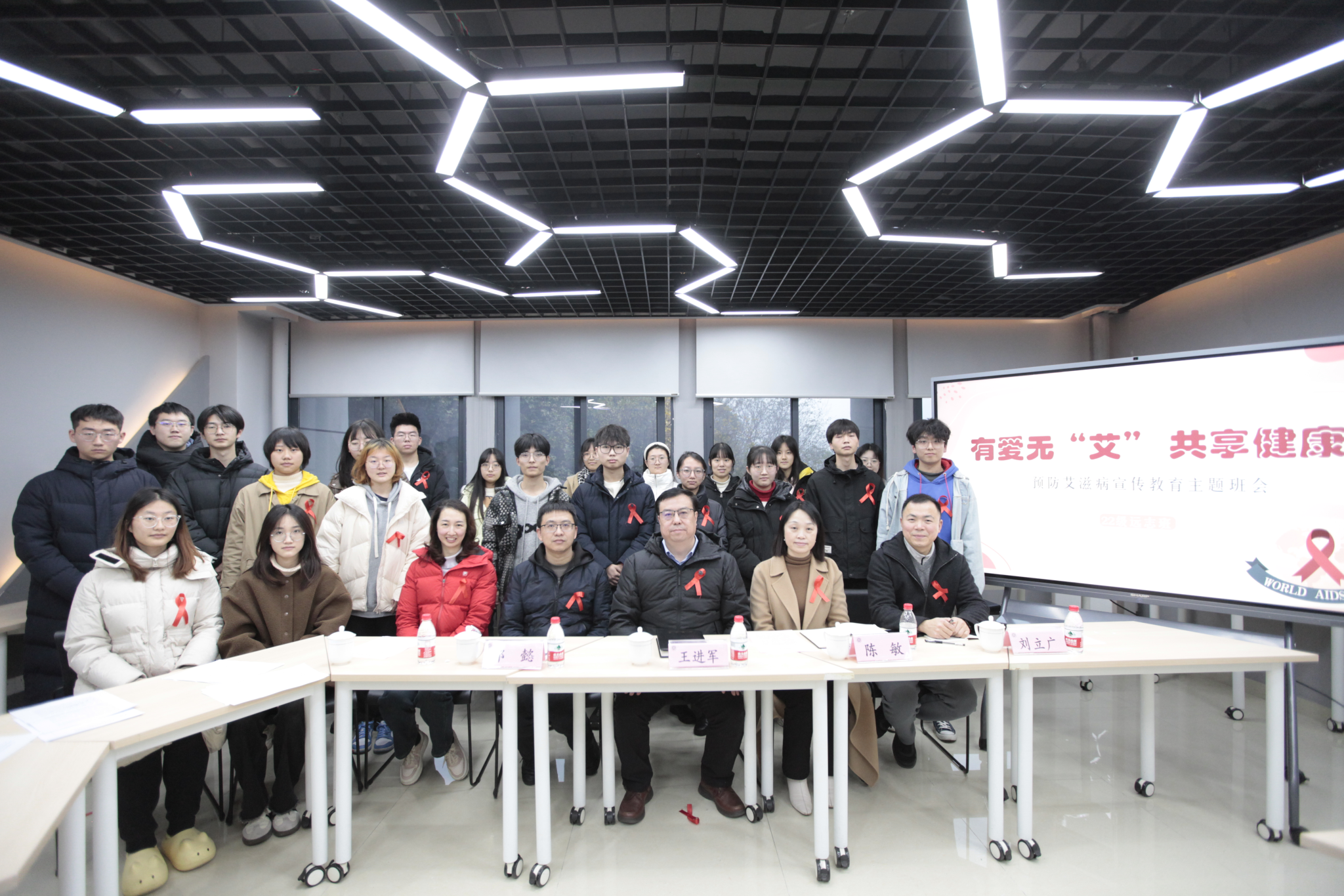 王进军和同学们一起制作了象征对生命热爱和对平等渴望的红丝带