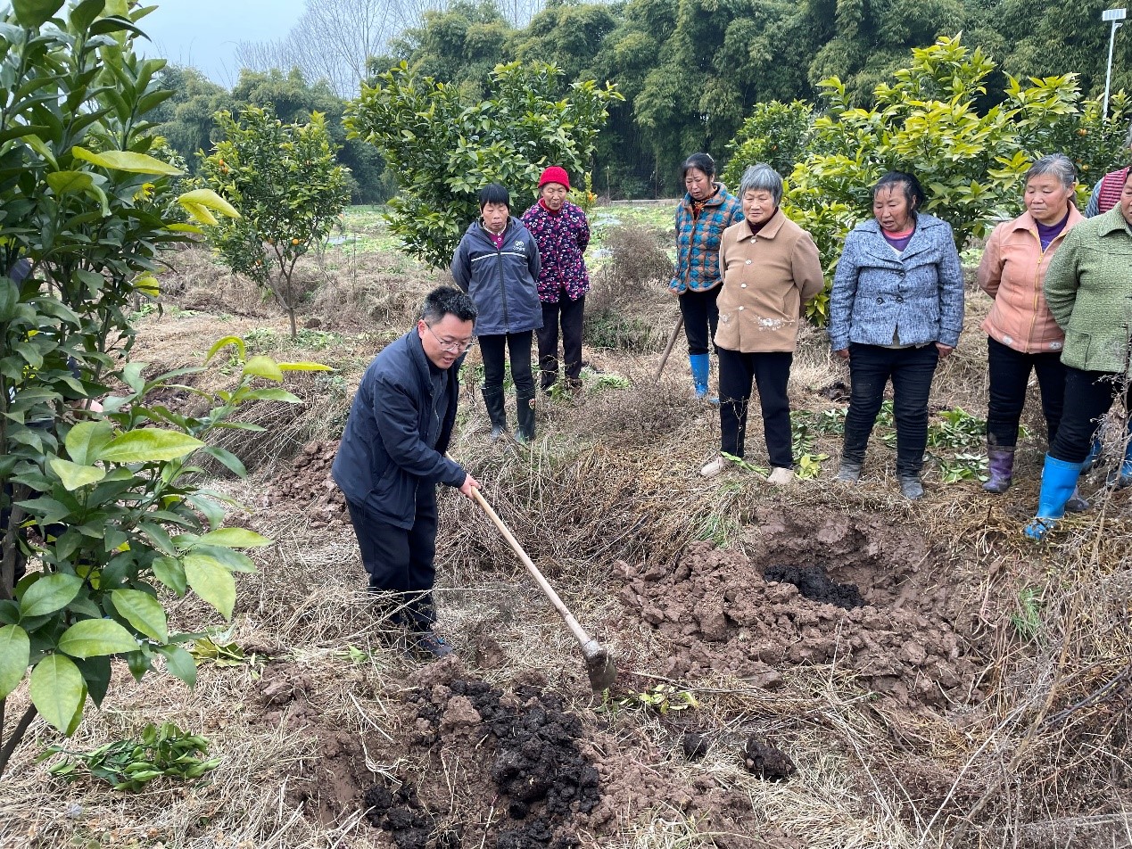把双脚扎进泥土里,把论文写在田地上。多年来,付行政教授积极奔走在产业一线,无论酷暑寒冬、刮风下雨,在田间地头都留下了他指导果农进行柑橘树整形修剪、喷药施肥的身影。付教授负责了重庆垫江、璧山、涪陵、万州、江津、铜梁以及湖北宜都、秭归、云南昌宁、浙江衢州等多地示范园的建设规划以及栽培管理技术服务,面对有些地方产业萧条,果农信心不足、不愿配合的情况,他没有轻言放弃,从最初建立微信交流群随时进行线上技术指导和生产过程跟踪,到频繁奔赴实地指导果农科学修剪、施肥,付教授付出的累累心血赢得了果农们的信任—这位西南大学的教授是真心实意来帮助他们渡过难关。更重要的是,在付教授的指导下,采用科学的栽培管理办法,原来几近荒废的柑橘园恢复了生机,村集体收入稳步上涨,随着腰包慢慢鼓起来,果农们脸上的笑容也明显多了起来。而这,也只是付教授在科技助农道路上的一点缩影。此外,为了帮助提高当地柑桔生产管理水平,付教授在多地持续开展柑橘整形修剪、营养施肥、花果管理等系列理论与实践技能培训,累计指导和培训达万余人次。其中,他全程指导建设的垫江丰达农业科技发展有限公司240亩果园、重庆璧山橘为农业有限公司300亩果园、湖北宜都姚家店镇180亩精品园等,均已成为当地重点示范果园。付教授及其所带领的团队,在柑桔研究所和相关产区十余年躬耕,为果农致富和助力柑橘产业振兴做出了重要贡献。