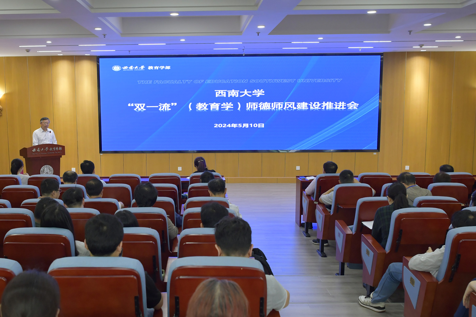 5月10日下午,西南大学“双一流”(教育学)师德师风建设推进会在教育学部802报告厅顺利召开。学校党委教师工作部部长李燕,发展规划与学科建设部副部长、学科建设办公室主任周琪,教育学部全体班子成员和教育学部、西南民族教育与心理研究中心教职工参加会议。会议由学部党委书记周文全主持。