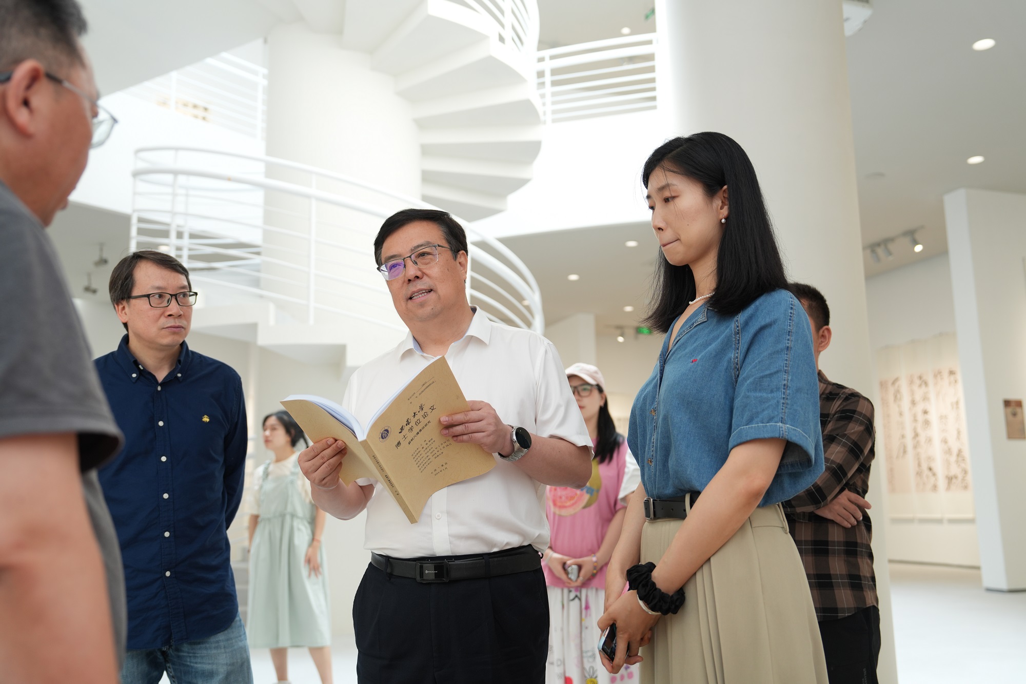 5月31日下午,王进军校长就艺术学科人才培养工作先后调研参观美术学院2024届本科生毕业作品展和西南大学中国书法研究所2024届毕业生作品展,相关职能部门负责人陪同调研。