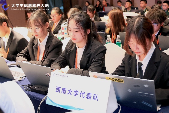 12月5日,2024年大学生信息素养大赛联赛暨高校信息素养教育教学工作研讨会在重庆大学举行。本次大赛吸引了来自重庆、四川、上海等地295所高校10万余学生参赛。西南大学参赛学生总计448名,其中57人晋级省赛。经过为期三个月的校内选拔赛、省赛淘汰赛、省赛决赛的比拼,在联赛阶段,中西东部地区共27支本科生队伍晋级参赛。西南大学代表队在联赛27支队伍中突出重围,蝉联联赛一等奖。